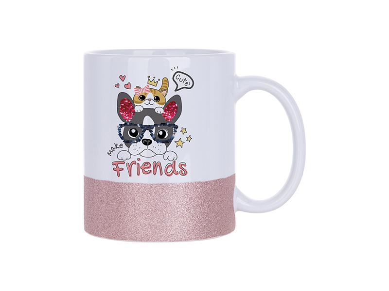 Item Name: Sublimation 11oz/330ml Sublimation Bottom Glitter Mug (Pink)