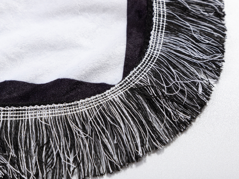 Material: Plush Material with Tassels, One side with 24 white panels ready for sublimation printing. the other side in black plush. White panel are Printable