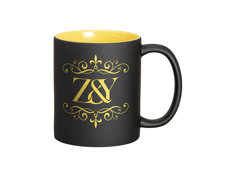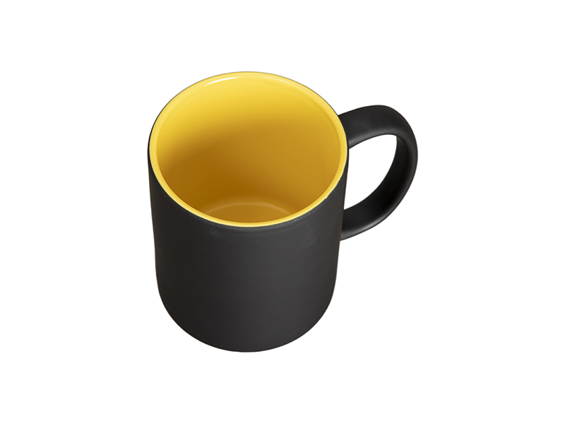 Item Name: 11oz Two-Tone Engravable Matte Black Mug (Yellow)
