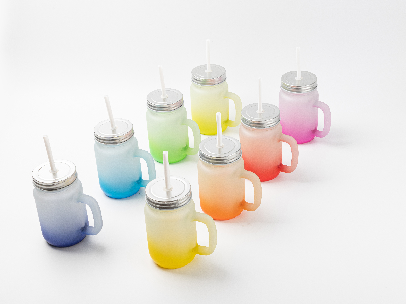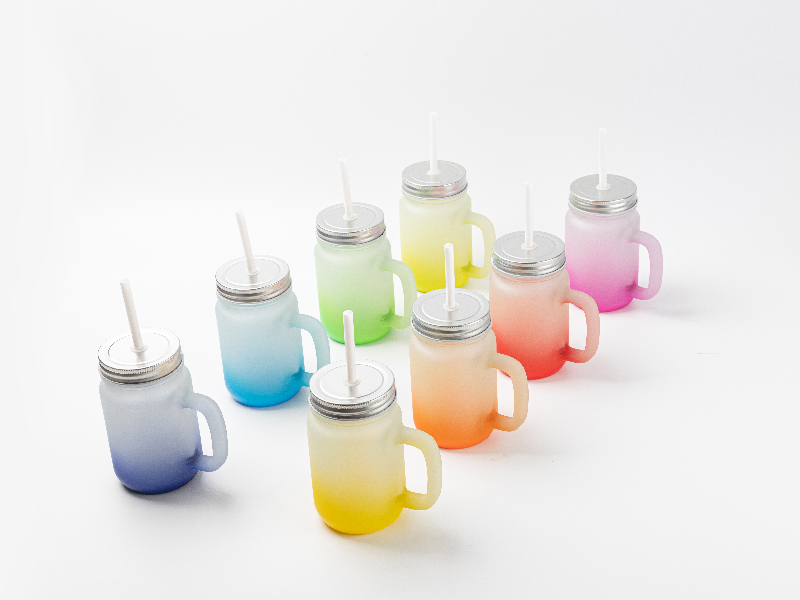 Item Name: 12oz/350ml Sublimation Blanks Mason Jar w/ Straw (Frosted, Gradient Color)