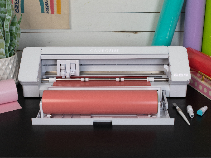 - Built-in roll feeder allows you to easily load and cut rolled materials like vinyl and heat transfer