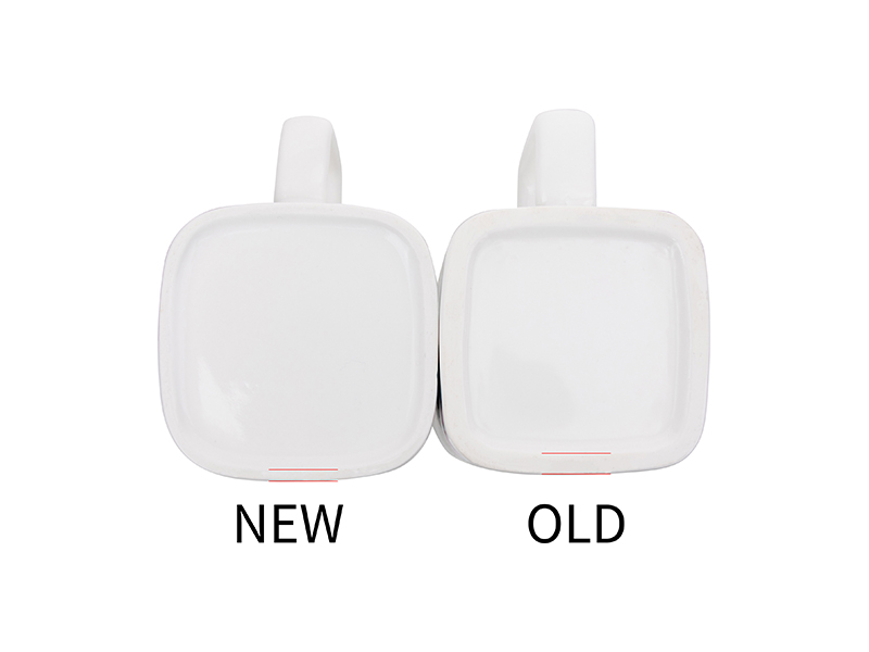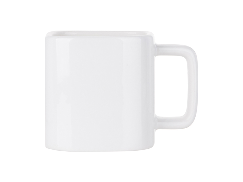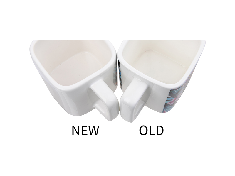 Square shape mug, with big handle, it could be printed by 3D mug wrap