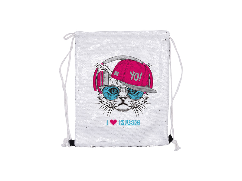 Item Name: Sublimation Sequin Drawstring Backpack (White/Silver)