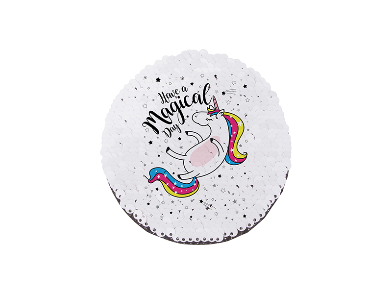 Item Name: Sublimation Flip Sequins Adhesive (Round, Light Blue W/ White)