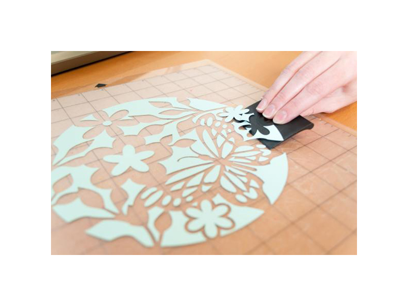 Use the Silhouette scraper to scrape cutting mats clean, apply transfer paper to vinyl artwork, and smooth adhesive to temporary tattoo paper, eliminating air bubbles along the way.