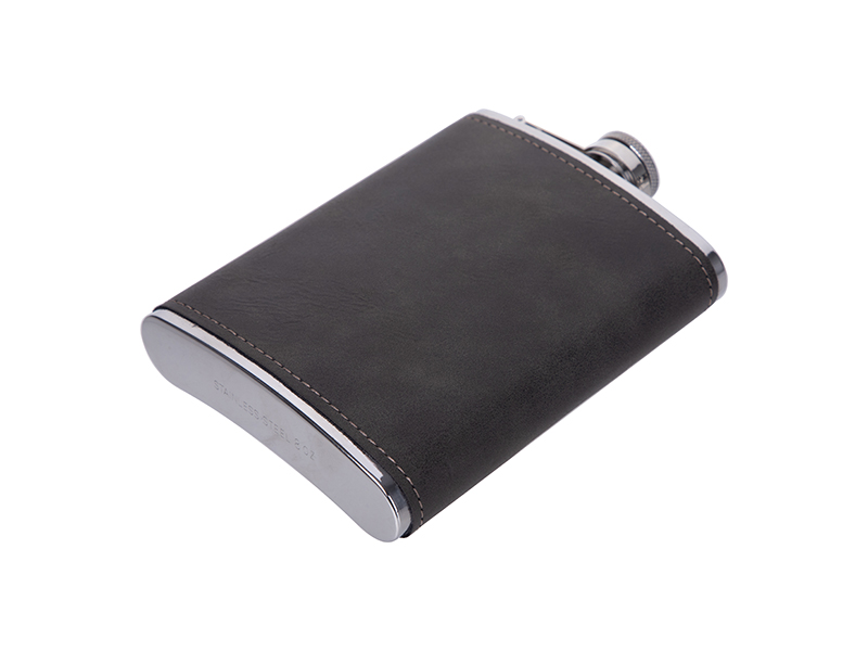 8oz/240ml Stainless Steel Hip Flask with PU Cover (Brown W/ Black)