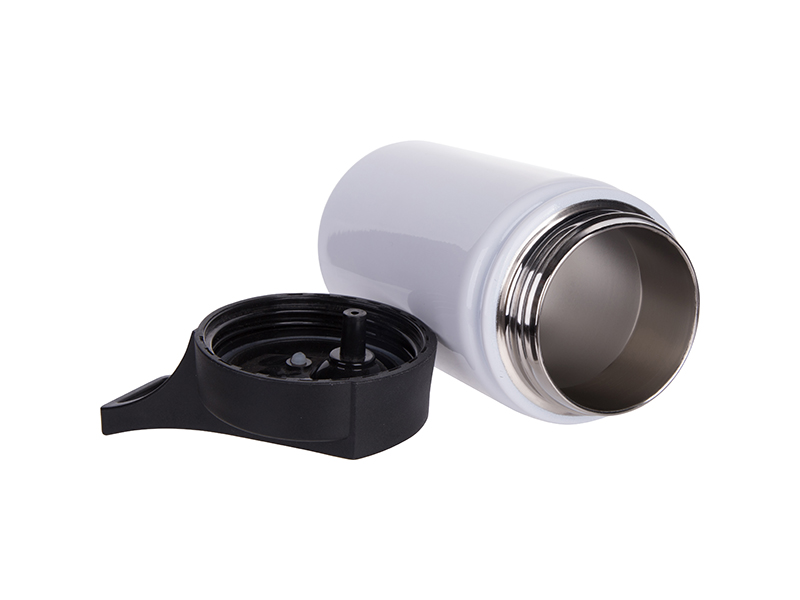 Item Name: Sublimation 12oz/350ml Stainless Steel Flask w/ Sports Straw Cap Flip Lid (White)