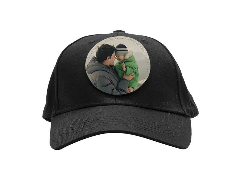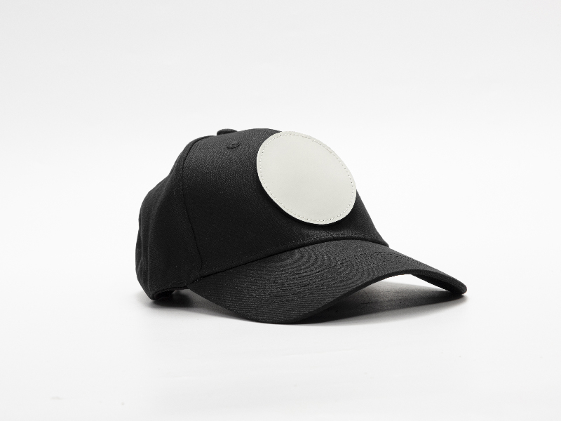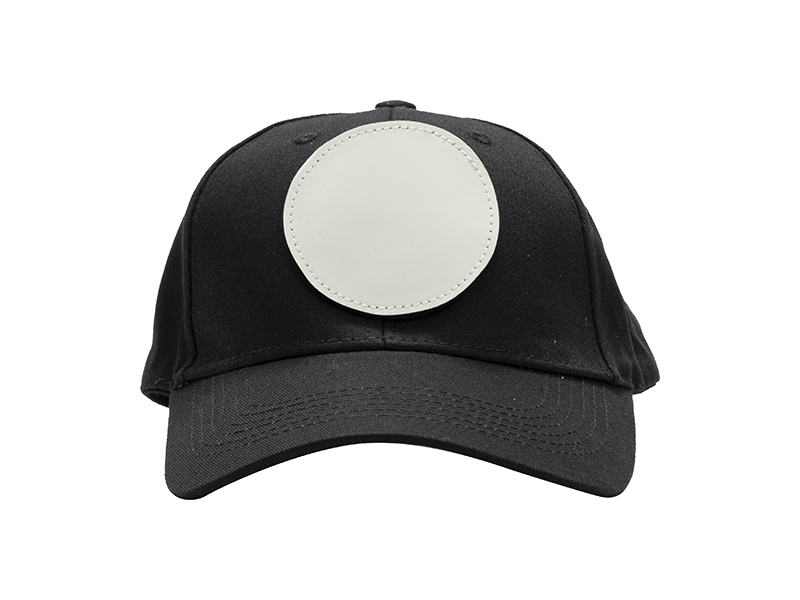 Item Name: Cotton Cap with 3" White Round Sub PU Leather Patch (Black)