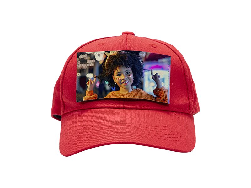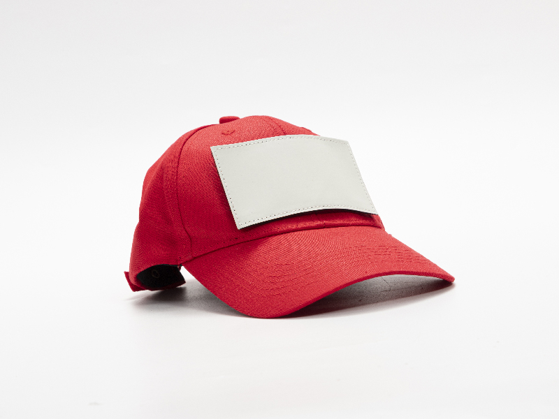Cotton Cap with 2.5"*4.5" White Rectangular Sub PU Leather Patch (Red)
