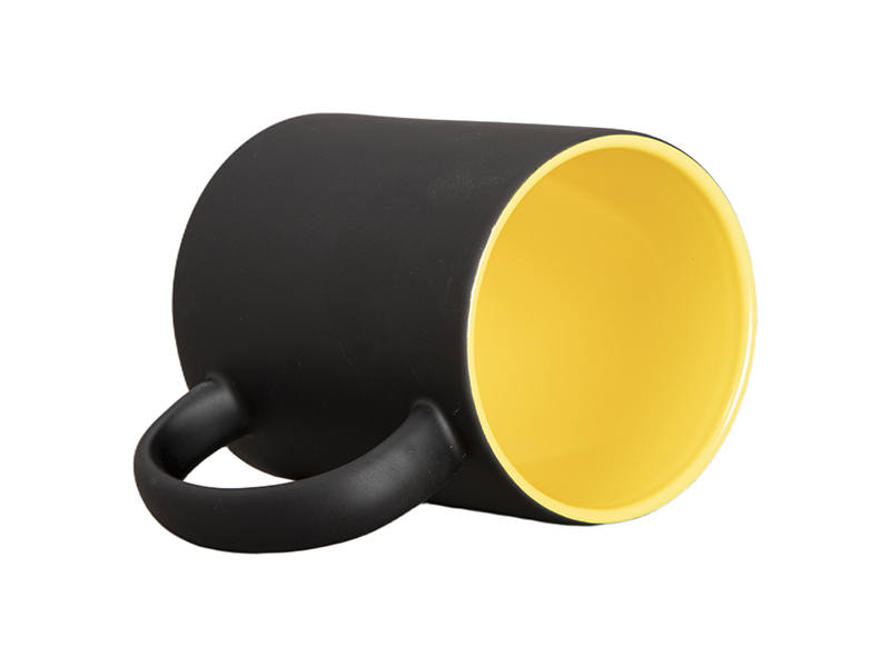 Item Name: 11oz Two-Tone Engravable Matte Black Mug (Yellow)