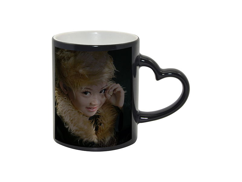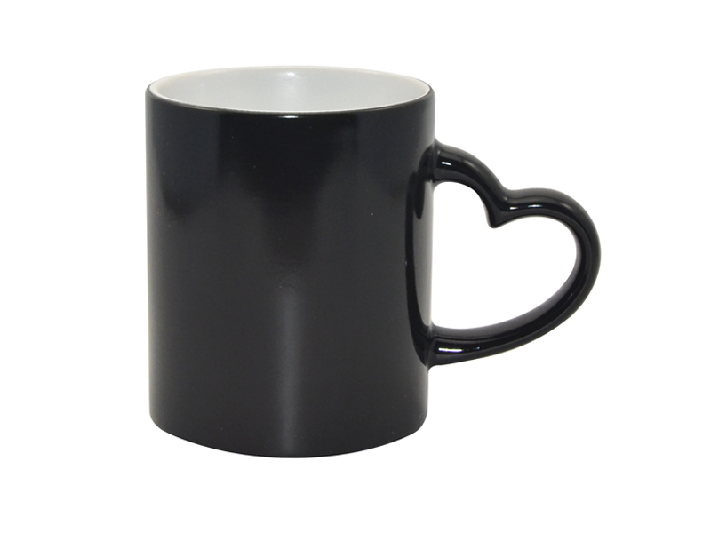 Item Name: Sublimation 11oz Full Color Change Mug with Heart Handle Black
