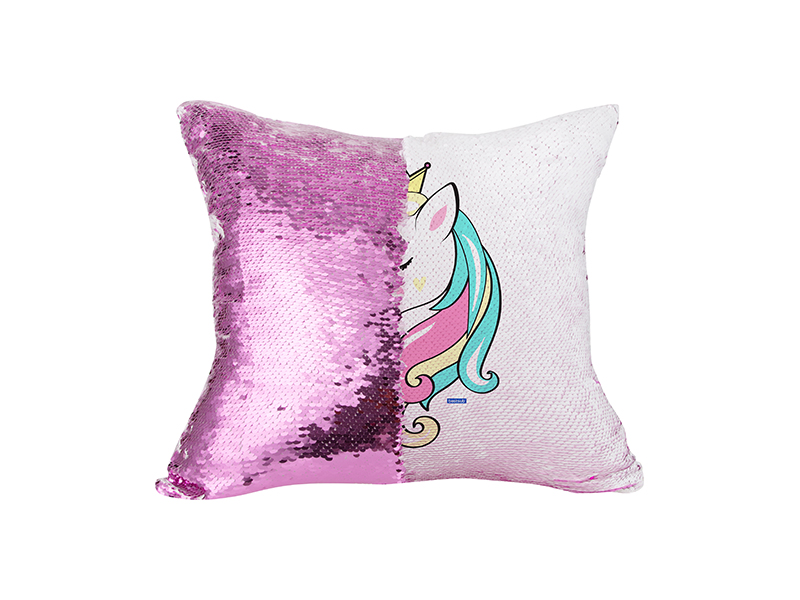 Flip Sequin Pillow, made of sequin fabric and white polyester, 40*40cm.
